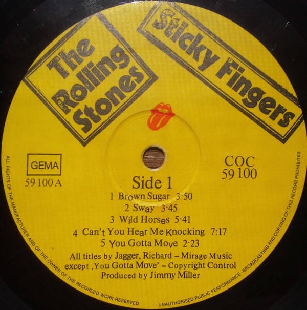 Matrise side 1: COC-59100-A3 T.M.L. ROLLING STONES RECORDS Manufactured in Germany